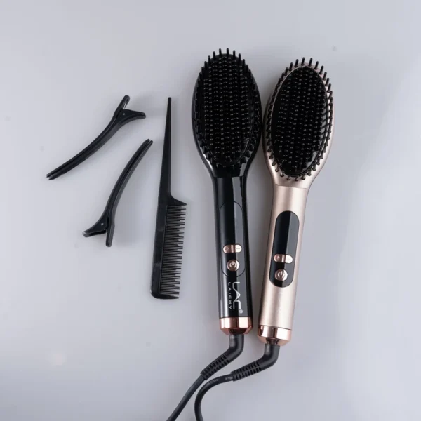 اقلام همراه شامل یک شانه و دو عدد گیره است که برای تفکیک بخش‌های مو و حالت‌دهی دقیق بسیار مفیدند.