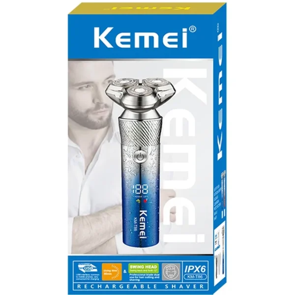 شیور صورت کیمی مدل T‑86 یکی از تولیدات نوآورانه برند معتبر Kemei است که با هدف ارائه تجربه اصلاحی حرفهای، راحت و کارآمد برای آقایان طراحی شده است. این دستگاه با بهرهگیری از ترکیب فناوریهای پیشرفته، طراحی ارگونومیک و تیغههای باکیفیت، انتخابی ایدهآل برای کسانی است که به کیفیت اصلاح و سلامت پوست خود اهمیت میدهند. در ادامه، به بررسی همه جوانب این محصول شامل طراحی، نوع اصلاح، امکانات، عملکرد و کاربردها میپردازیم تا دید کاملی برای تصمیمگیری خرید داشته باشید.