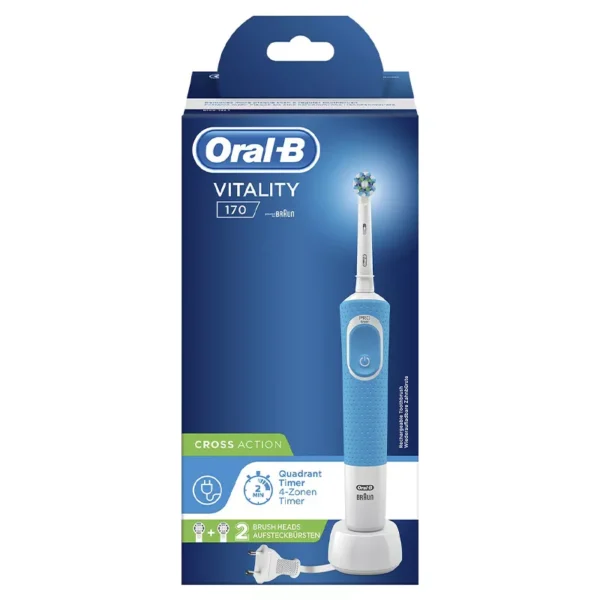 مسواک برقی Oral-B Vitality 170 آبی از سری Vitality 100 ترکیبی از طراحی ساده، کیفیت بالا و عملکرد مؤثر است. فناوری پاکسازی دوبعدی، سری CrossAction و تایمر داخلی باعث شده تا این مدل به گزینهای محبوب برای استفاده روزانهی بزرگسالان تبدیل شود.