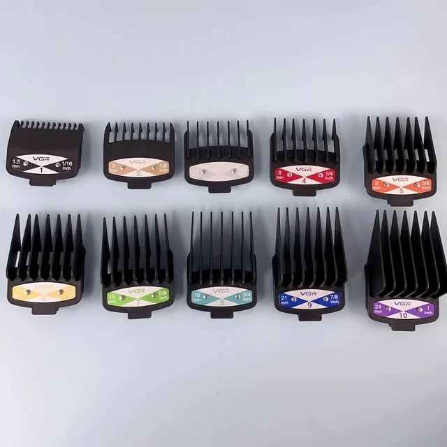یکی از مزایای مهم کلیپر وی‌جی‌ار مدل 001، وجود 10 شانه مختلف در بسته‌بندی آن است. سایزهای مختلف شانه‌ها به کاربر امکان می‌دهند طول موی دلخواه خود را از بسیار کوتاه تا متوسط انتخاب کند. این تنوع شانه‌ها برای ایجاد مدل‌های گوناگون، از فید تدریجی تا کوتاهی کامل، کاربردی است. کیفیت بالای این شانه‌ها باعث می‌شود حتی پس از استفاده طولانی، دچار تغییر شکل یا شکستگی نشوند. نصب و تعویض شانه‌ها نیز بسیار ساده است و بدون ابزار جانبی انجام می‌شود، بنابراین کاربر می‌تواند سریع و آسان تغییر طول مو را اعمال کند.